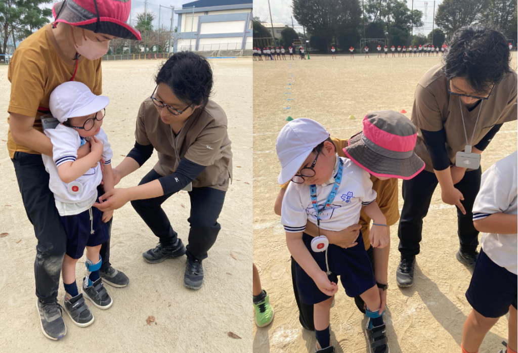 医療的ケアを必要とする児に、小学校の先生方と保護者さんと連携し、運動会の徒競走やダンスのサポートを行ってきました。